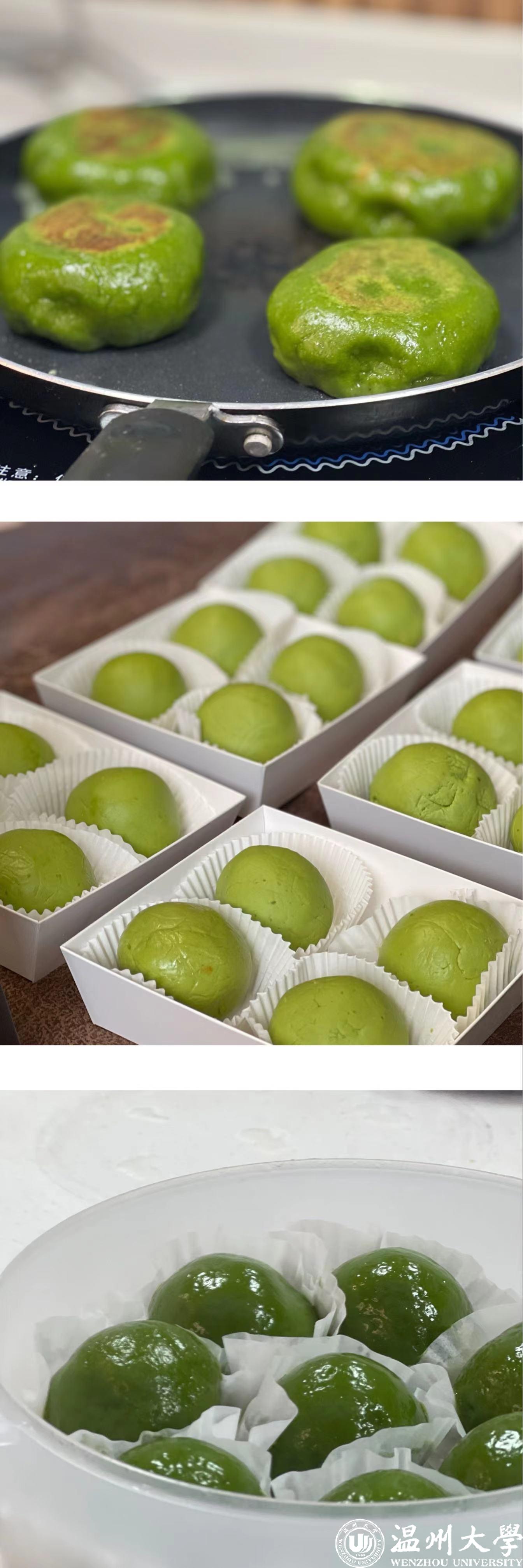 随后,我们进入第二个活动:“做青团、话清明、共享初春味道”,大家兴趣盎然地捻青、揉粉、搓馅、抹油,看似简单实则不易。在“一木烘焙”杨老师的耐心指点下,认真倾听,小心动手。在一片欢声笑语中,一个个油绿如玉、糯韧绵软的青团纷纷出炉。
