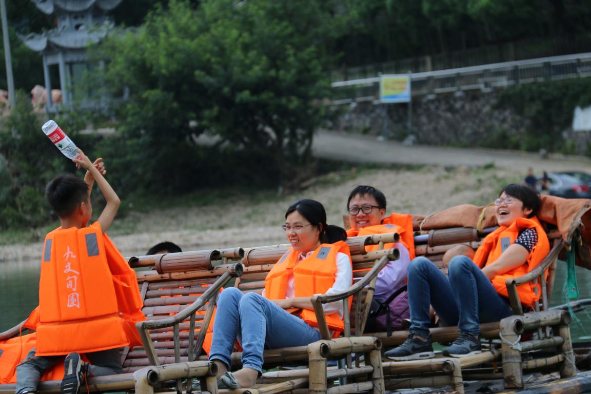 教工一起参与了轻松悠闲的楠溪江漂流。老师们乘着小竹筏顺着楠溪江漂流而下,悠然地欣赏沿途自然风光,加上小朋友和老师们优美清澈的歌声,回旋在楠溪江和峡谷之间,更是让所有人得到彻底放松。