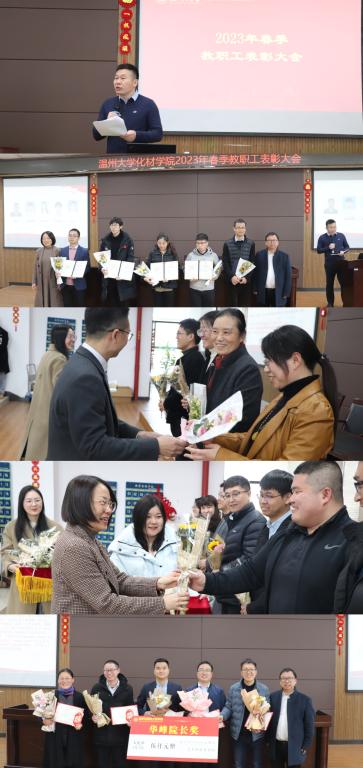 “华峰院长奖”颁奖仪式。表彰了杨昕宇、方国勇、张敏、郭大营、张礼杰等5位老师,杨植院长为获奖老师颁奖并表示祝贺。