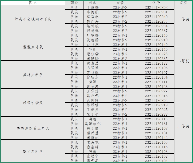 关于第四届材料科创大赛获奖情况的公示