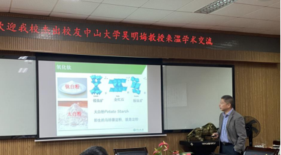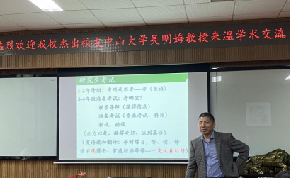吴明娒教授作了题为“氧化钛以及钛酸盐材料的设计制备和应用研究”的主题报告。吴教授从氧化钛及钛酸盐材料的特点、应用和产研结合三方面来进行学术报告。会中对中山大学硕士、博士招生进行解读,使得本院学生对中山大学、继续深造有了更深层次的了解。
